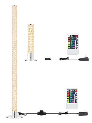 Perfect for rainy days or to brighten a corner at night. With memory function, it remains the brightness that you selected before, even when power outage. The LED will never overheat and stays cool to the touch so that you do not burn yourself when repositioning the corner lamp; heavy chrome metal base plate keeps the lamp sturdily in place and wobble free; 1 years warranty with friendly service See more product details. About this item 16 Color Options Easy to change the mood or to add a splash of modern flair to any room; RGBW multi-color LED mood lighting has 16 color options and Flash, Strobe, Fade, Smooth modes to meet different needs; create a fashion atmosphere or warm ambient light for living room, bedroom, entertainment room, condo balcony, bar and party Bright Sparkly Look Crystal Light White crystal sand rock acrylic tube shade; crystal like beads reflect light nicely; minimalist slim design doesn't take much space; slender free standing column LED corner floor lamp fits easily in any corner of the room or behind a sofa Dimmable and Memory Function Available to adjust between 10 warm light brightness levels and 5 RGB lights brightness levels; the versatile floor lamp also remembers the previous brightness setting from your last use and works with all standard timers, wifi smart plugs, remote control outlets, and wall switches Floor Lamp with Remote Control Comes with a muti-functional remote; 26FT remote range within a line of sight; simply remote control the floor lamp without leaving the sofa or warm bed; perfect for the elderly and those with limited mobility or back pain; 2 AAA batteries included; turn on the lamp by foot switch before remote controlling Long Lasting, Stable and Safety Never replace a bulb, the LED floor lamp features over 30,000 hours long life. minimalism and statement-making design.