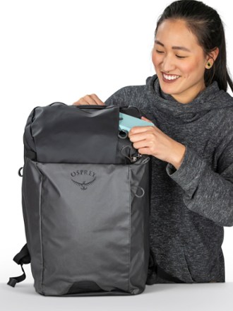 Inside the zippered main The bucket-style lid offers quick access to the main compartment with an internal document sleeve and pockets to keep all Osprey Transporter Zip Top Laptop Backpack.
