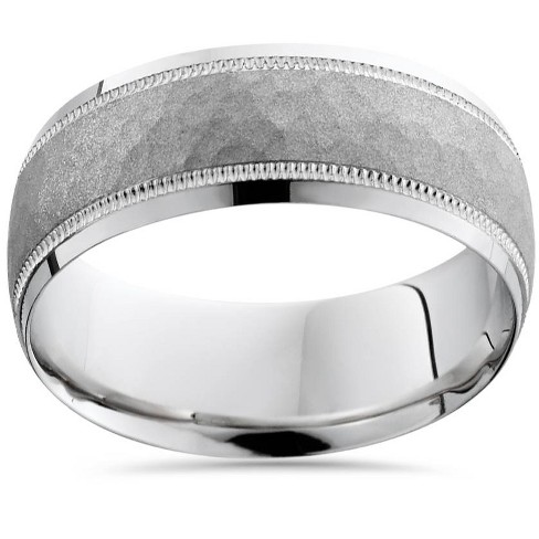 hammered band mens steel stainless effect 7mm rings milgrain finish edge bands artisan ring