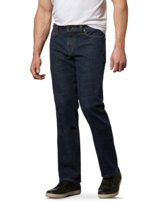 Still, these are 94 percent cotton so they retain the look of a traditional pair of jeans in all four available colors. Guys that need a bit more room in the legs will welcome the non-tapered cut. It's done in a deep blue shade with subtle creasing for an authentic worn-in character and finished with marigold topstitching that highlights the classic five-pocket construction.