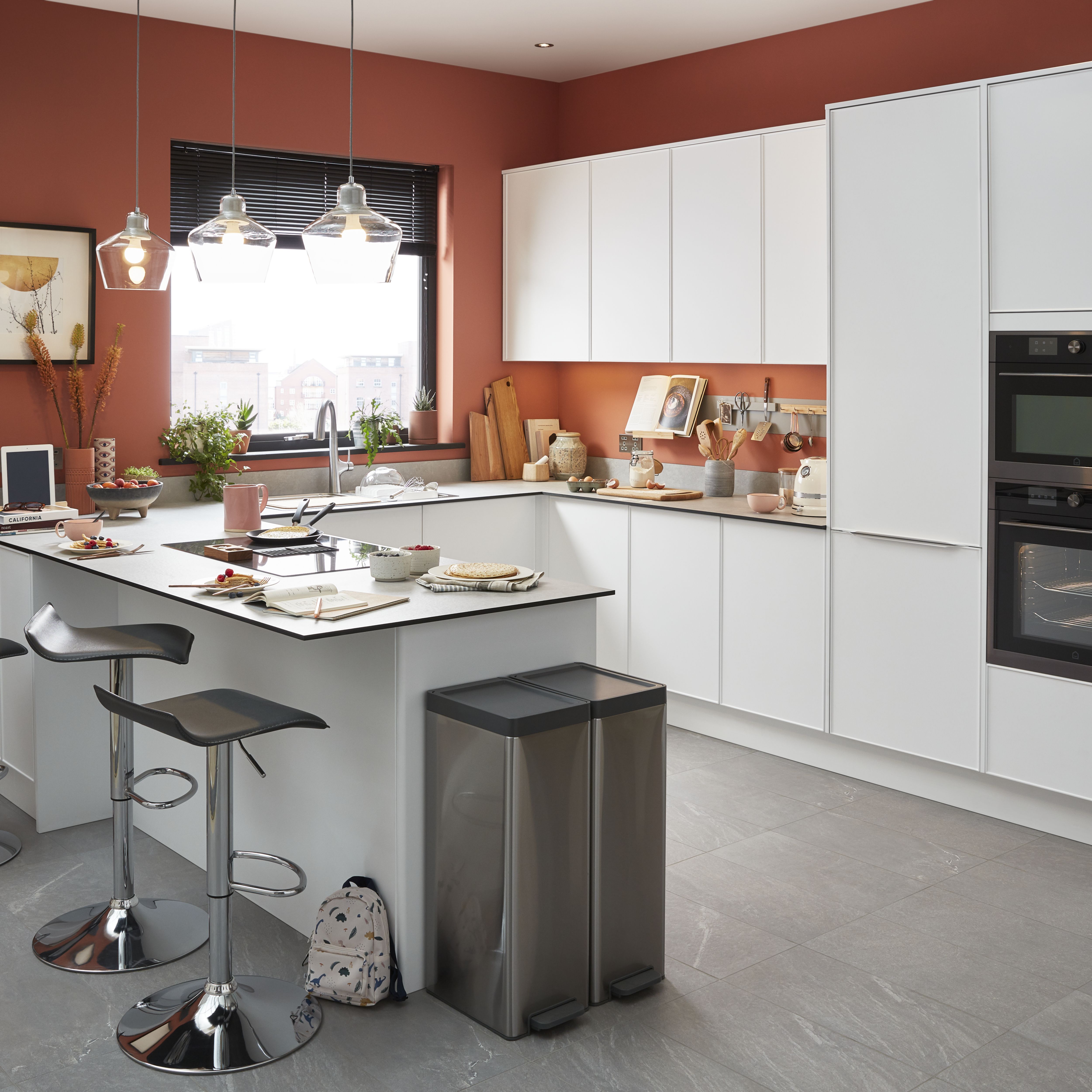 They wanted to keep their kitchen separate from the rest of the living area. When the dishwasher was open, it blocked the fridge. They found a Sweeten contractor to transform their three-story home, starting with the kitchen. Order kitchen wall units online from B&Q today. The materials were layered at different depths bringing volume to the kitchen.